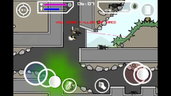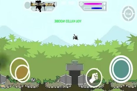 Doodle Army 2: Mini Militia - A unique multiplayer shooter in the likeness of MINI GUNS. Quite cool shooter , on a close calculated team fights. Shoot, run , and wet - the principle is one here, which should be adhered to. Play as yourself, and with your friends on wi-fi , online and co-op against real players. The weight of the weapon, the pleasant control and the dynamics of the furious everyone expects who will want to shoot . To control a pair of joysticks are used - for movement one, for attacking another and aiming. In addition to normal actions, we flywe will be able to use reactive shoes, which means that bloody battles can pass in the air.